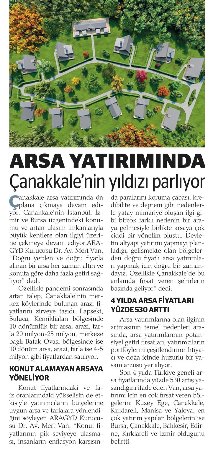 Arsa Yatırımında Çanakkale’nin Yıldızı Parlıyor